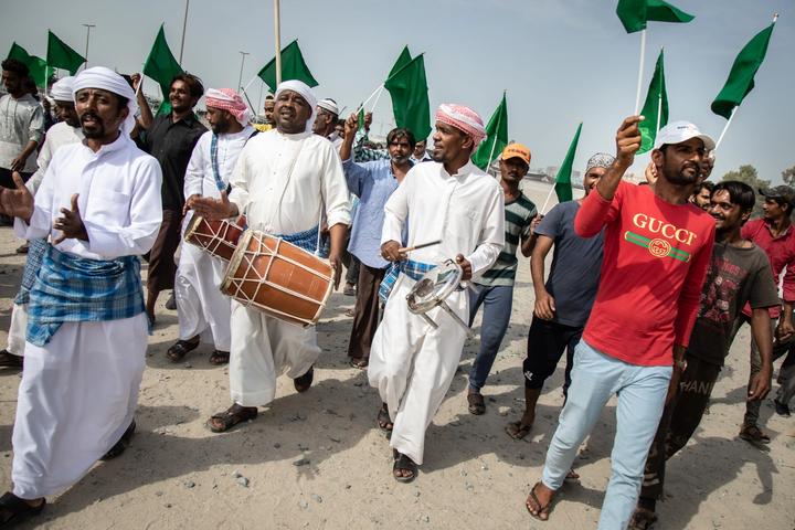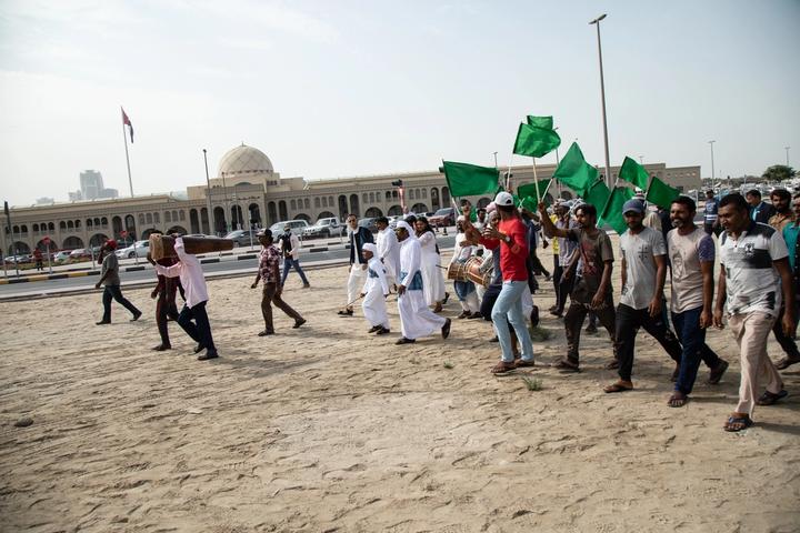 Arrival of the procession to Old Souq Al Jubail Fruit & Vegetable Market